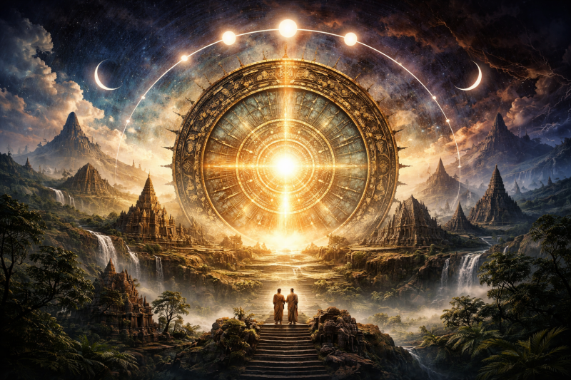 Across these traditions, the cycle is not singular. It is said to have unfolded multiple times already, entire worlds rising and falling before the current one. Civilization, in this view, is not unique. It is iterative.